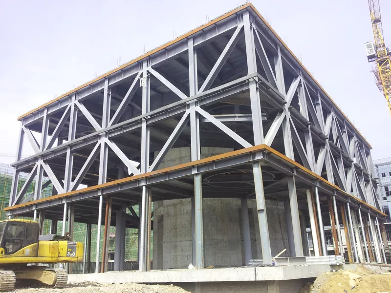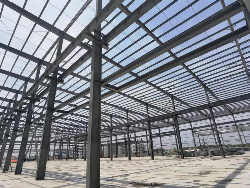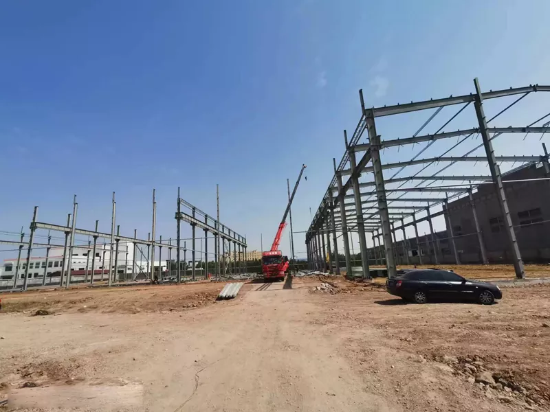 Galvenokārt sastāv no tērauda kolonnām, tērauda stariem, tērauda breketēm utt., Kas ir salikti rāmja konstrukcijā caur metināšanu, pieskrūvētiem savienojumiem utt.