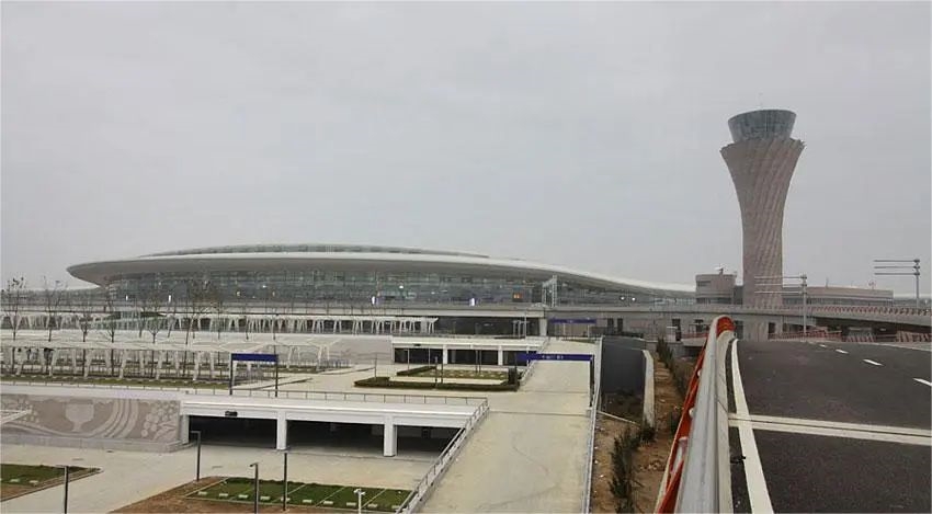 Lielākais 4E līmeņa starptautiskais vārteja 30 km attālumā no centra. II fāzes paplašināšana ietver lidostas objektus, gaisa satiksmes kontroli, degvielas piegādi un bāzes Shandong Airlines un China Eastern Airlines.