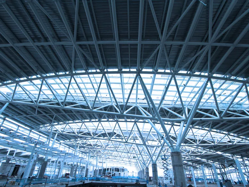 3. Tērauda konstrukciju izgatavošana Tērauda detaļas, tostarp sijas, kolonnas, balstiekārtas un jumta kopnes, tiek iepriekš izgatavotas rūpnīcā, izmantojot augstas kvalitātes tēraudu. Precīzā inženierija nodrošina, ka šie komponenti uzstādīšanas laikā precīzi un droši savienojas kopā.